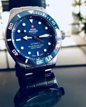 Rincez la montre à l’eau douce après exposition au sel ou au chlore, évitez les chocs thermiques/magnétiques et vérifiez l’étanchéité en cas d’usage aquatique régulier. Un nettoyage au chiffon microfibre et un remplacement périodique des joints prolongent la durabilité et la précision de votre SWISS MILITARY by Chrono.