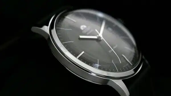 Cette sobriété du cadran est contrastée par deux détails, ayant tout de même leurs importances : la forme de l’aiguille des heures et celle des minutes. Véritable révolution dans l’horlogerie moderne, le style rectangulaire, droit, presque désinvolte, a souvent été délaissé par les horlogers contemporains. Ce choix a constitué un véritable pari pour les designers de la marque, qui peuvent aujourd’hui se féliciter d’une telle originalité…